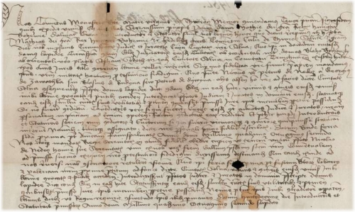 Hunyadi Mátyás beiktató oklevele Zsolna városi ingatlant illetően - 1482 Regeszta: Mátyás király felhívja a turóci konventet, iktassa be Solna várost egy kőház birtokába Zsolnán (Trencsén m.), mely Gloss elhunyt zsolnai polgáré volt. 1482-04-01 (Levéltári jelzet DL-DF 88664) Forrás: https://archives.hungaricana.hu/hu/charters/view/215201/?pg=0&bbox=-941%2C-